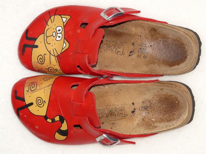 Keywords: slippers birkenstock cat red colorful shoe run go clothing