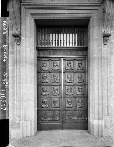 | Keywords: SLNSW 12979 Exterior Public Library of NSW showing the bronze entrance doors embossed with heads of explorers.jpg en Exterior Public Library of NSW showing the bronze entrance doors embossed with heads of explorers 1942 http //www acmssearch sl nsw gov au/search/itemDetailPaged cgi itemID 12979 item <br/>http //www acmssearch sl nsw gov au/search/itemDetailPaged cgi itemID 37473 album <br/>http //www acmssearch sl nsw gov au/search/itemDetailPaged cgi itemID 395018 collection Creator Sam Hood This image may be used freely without requesting permission The State Library of New South Wales http //www acmssearch sl nsw gov au/search/itemPopLarger cgi itemID 12979 requests acknowledgement that the image is from the collections of the State Library of NSW User 99of9/SLNSW_extra_metadata_template 12979 Exterior Public Library of NSW showing the bronze entrance doors embossed with heads of explorers Home and Away - 10624 1942 Photographs 32812 images copied from glass and cellulose nitrate photonegatives The Library first purchased a large collection of negatives from Gladys Hood in 1972 This collection which included nitrate negatives which have subsequently been copied at DG 0N4 NCY 28-61 was transferred to a videodisc in 1991 and each image indexed individually Ted Hood assisted with the indexing; images were also identified using surviving studio registers The videodisc known as the Home Away disc or simply the Hood collection was digitised in 1996 and mounted on the Internet with upgraded index records via the online catalogue in December 1998 Purchased from Gladys Hood 1972 Copyright restrictions may apply - Photographs in this collection created before 1955 are all out of copyright Photographs created after 1955 are in copyright for the life of creator plus 70 years ; Please acknowledge - Mitchell Library State Library of New South Wales and Courtesy copyright holder 395018 Sam Hood photographic collection 1916-ca 1955 Approximately 44 800 negatives ; 7 309 photographic prints ; 3 boxes of textual material ; 6 film reels The Library first purchased a large collection of negatives from Gladys Hood in 1972 This collection which included nitrate negatives which have subsequently been copied at DG 0N4 NCY 28-61 was transferred to a videodisc in 1991 and each image indexed individually Ted Hood assisted with the indexing; images were also identified using surviving studio registers The videodisc known as the Home Away disc or simply the Hood collection was digitised in 1996 and mounted on the Internet with upgraded index records via the online catalogue in December 1998 ; Another collection from Sam Hood's studio was purchased in 1993 from Gladys Hood's descendants This comprised 7300 photoprints PXE 789 and ca 12000 negatives ON 204 Digitisation of important photographs in PXE 789 began Mar 2002 but ON 204 has not been digitised and must be viewed at the Library Samuel J Hood's 1872-1953 claimed to have been born 1870 but the South Australian Birth Index gives date as 20 August 1872 His career as a photographer began in the 1880s ; He ran a successful business in ships portraits these negatives are now held by the Australian National Maritime Museum Sydney and portraits of people in the late nineteenth - early twentieth century The State Library has little representation of this period In 1918 he acquired the Dalny Studio at 124 Pitt Street and began to expand his business into press photography providing photographs for the Sydney Mail the Australasian the Daily Guardian the Daily Telegraph Pictorial the Labor Daily the Sun the Daily News and the Sydney Morning Herald Press photography increasingly came to dominate his business and in 1934 he joined the Labor Daily for a short time as a full-time photographer engaging other staff to look after his studio ; By the mid-1930s most newspapers employed their own photographers and Hood's commissions from the papers began to decline Hood sought other kinds of commissions and won a number of long term advertising and commercial contracts He contributed a number of photographs of Sydney buildings and streets to Building Construction and Australasian Engineer during the late 1930s and early 1940s Hood also had extensive contacts in the entertainment industry who called upon him to document celebrity events and stars as well as theatre advertising Throughout his career he worked at the stock-in-trade for commercial photographers portraits weddings and even funerals ; A number of photographers worked for Dalny Studio some of these include Ernie Bowen Gus Daley Jack Lazern Lethington Maitland as well as Sam's own children Gladys and Ted ; For detailed biographical information about photographer Sam Hood see Sydney exposures through the eyes of Sam Hood his Studio 1925-1950 / Alan Davies Sydney State Library of New South Wales 1991 Out of copyright - Created before 1955 Photographs ; Please acknowledge - Mitchell Library State Library of New South Wales advertising photography; commercial photography; photojournalism 395018 Original item no NCY31/517 yes no PD-Australia PD-1996 Australia Images from the State Library of NSW album 37473 SLNSW media uploaded by User 99of9 Photographs by Sam Hood State Library of New South Wales Doors |