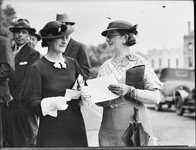 | Keywords: SLNSW 14182 Justices of the Peace sworn in Two women holding papers outside Court of Quarter Sessions.jpg en Justices of the Peace sworn in Two women holding papers outside Court of Quarter Sessions 16/2/1935 http //www acmssearch sl nsw gov au/search/itemDetailPaged cgi itemID 14182 item <br/>http //www acmssearch sl nsw gov au/search/itemDetailPaged cgi itemID 37473 album <br/>http //www acmssearch sl nsw gov au/search/itemDetailPaged cgi itemID 395018 collection Creator Sam Hood This image may be used freely without requesting permission The State Library of New South Wales http //www acmssearch sl nsw gov au/search/itemPopLarger cgi itemID 14182 requests acknowledgement that the image is from the collections of the State Library of NSW User 99of9/SLNSW_extra_metadata_template 14182 Justices of the Peace sworn in Two women holding papers outside Court of Quarter Sessions Home and Away - 11848 16/2/1935 Photographs 32812 images copied from glass and cellulose nitrate photonegatives The Library first purchased a large collection of negatives from Gladys Hood in 1972 This collection which included nitrate negatives which have subsequently been copied at DG 0N4 NCY 28-61 was transferred to a videodisc in 1991 and each image indexed individually Ted Hood assisted with the indexing; images were also identified using surviving studio registers The videodisc known as the Home Away disc or simply the Hood collection was digitised in 1996 and mounted on the Internet with upgraded index records via the online catalogue in December 1998 Purchased from Gladys Hood 1972 Copyright restrictions may apply - Photographs in this collection created before 1955 are all out of copyright Photographs created after 1955 are in copyright for the life of creator plus 70 years ; Please acknowledge - Mitchell Library State Library of New South Wales and Courtesy copyright holder 395018 Sam Hood photographic collection 1916-ca 1955 Approximately 44 800 negatives ; 7 309 photographic prints ; 3 boxes of textual material ; 6 film reels The Library first purchased a large collection of negatives from Gladys Hood in 1972 This collection which included nitrate negatives which have subsequently been copied at DG 0N4 NCY 28-61 was transferred to a videodisc in 1991 and each image indexed individually Ted Hood assisted with the indexing; images were also identified using surviving studio registers The videodisc known as the Home Away disc or simply the Hood collection was digitised in 1996 and mounted on the Internet with upgraded index records via the online catalogue in December 1998 ; Another collection from Sam Hood's studio was purchased in 1993 from Gladys Hood's descendants This comprised 7300 photoprints PXE 789 and ca 12000 negatives ON 204 Digitisation of important photographs in PXE 789 began Mar 2002 but ON 204 has not been digitised and must be viewed at the Library Samuel J Hood's 1872-1953 claimed to have been born 1870 but the South Australian Birth Index gives date as 20 August 1872 His career as a photographer began in the 1880s ; He ran a successful business in ships portraits these negatives are now held by the Australian National Maritime Museum Sydney and portraits of people in the late nineteenth - early twentieth century The State Library has little representation of this period In 1918 he acquired the Dalny Studio at 124 Pitt Street and began to expand his business into press photography providing photographs for the Sydney Mail the Australasian the Daily Guardian the Daily Telegraph Pictorial the Labor Daily the Sun the Daily News and the Sydney Morning Herald Press photography increasingly came to dominate his business and in 1934 he joined the Labor Daily for a short time as a full-time photographer engaging other staff to look after his studio ; By the mid-1930s most newspapers employed their own photographers and Hood's commissions from the papers began to decline Hood sought other kinds of commissions and won a number of long term advertising and commercial contracts He contributed a number of photographs of Sydney buildings and streets to Building Construction and Australasian Engineer during the late 1930s and early 1940s Hood also had extensive contacts in the entertainment industry who called upon him to document celebrity events and stars as well as theatre advertising Throughout his career he worked at the stock-in-trade for commercial photographers portraits weddings and even funerals ; A number of photographers worked for Dalny Studio some of these include Ernie Bowen Gus Daley Jack Lazern Lethington Maitland as well as Sam's own children Gladys and Ted ; For detailed biographical information about photographer Sam Hood see Sydney exposures through the eyes of Sam Hood his Studio 1925-1950 / Alan Davies Sydney State Library of New South Wales 1991 Out of copyright - Created before 1955 Photographs ; Please acknowledge - Mitchell Library State Library of New South Wales advertising photography; commercial photography; photojournalism 395018 Original item no NCY33/238 yes no PD-Australia PD-1996 Australia Images from the State Library of NSW album 37473 SLNSW media uploaded by User 99of9 Photographs by Sam Hood Fashion in 1935 Women with hats |