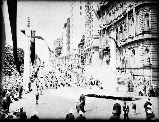 Keywords: SLNSW 24715 150th Anniversary celebrations procession through streets.jpg en 150th Anniversary celebrations procession through streets circa 1925 1957 http //www acmssearch sl nsw gov au/search/itemDetailPaged cgi itemID 24715 item <br/>http //www acmssearch sl nsw gov au/search/itemDetailPaged cgi itemID 37473 album <br/>http //www acmssearch sl nsw gov au/search/itemDetailPaged cgi itemID 395018 collection Creator Sam Hood This image may be used freely without requesting permission The State Library of New South Wales http //www acmssearch sl nsw gov au/search/itemPopLarger cgi itemID 24715 requests acknowledgement that the image is from the collections of the State Library of NSW Photographs 32812 images copied from glass and cellulose nitrate photonegatives The Library first purchased a large collection of negatives from Gladys Hood in 1972 This collection which included nitrate negatives which have subsequently been copied at DG 0N4 NCY 28-61 was transferred to a videodisc in 1991 and each image indexed individually Ted Hood assisted with the indexing; images were also identified using surviving studio registers The videodisc known as the Home Away disc or simply the Hood collection was digitised in 1996 and mounted on the Internet with upgraded index records via the online catalogue in December 1998 Purchased from Gladys Hood 1972 Copyright restrictions may apply - Photographs in this collection created before 1955 are all out of copyright Photographs created after 1955 are in copyright for the life of creator plus 70 years ; Please acknowledge - Mitchell Library State Library of New South Wales and Courtesy copyright holder 395018 Sam Hood photographic collection 1916-ca 1955 Approximately 44 800 negatives ; 7 309 photographic prints ; 3 boxes of textual material ; 6 film reels The Library first purchased a large collection of negatives from Gladys Hood in 1972 This collection which included nitrate negatives which have subsequently been copied at DG 0N4 NCY 28-61 was transferred to a videodisc in 1991 and each image indexed individually Ted Hood assisted with the indexing; images were also identified using surviving studio registers The videodisc known as the Home Away disc or simply the Hood collection was digitised in 1996 and mounted on the Internet with upgraded index records via the online catalogue in December 1998 ; Another collection from Sam Hood's studio was purchased in 1993 from Gladys Hood's descendants This comprised 7300 photoprints PXE 789 and ca 12000 negatives ON 204 Digitisation of important photographs in PXE 789 began Mar 2002 but ON 204 has not been digitised and must be viewed at the Library Samuel J Hood's 1872-1953 claimed to have been born 1870 but the South Australian Birth Index gives date as 20 August 1872 His career as a photographer began in the 1880s ; He ran a successful business in ships portraits these negatives are now held by the Australian National Maritime Museum Sydney and portraits of people in the late nineteenth - early twentieth century The State Library has little representation of this period In 1918 he acquired the Dalny Studio at 124 Pitt Street and began to expand his business into press photography providing photographs for the Sydney Mail the Australasian the Daily Guardian the Daily Telegraph Pictorial the Labor Daily the Sun the Daily News and the Sydney Morning Herald Press photography increasingly came to dominate his business and in 1934 he joined the Labor Daily for a short time as a full-time photographer engaging other staff to look after his studio ; By the mid-1930s most newspapers employed their own photographers and Hood's commissions from the papers began to decline Hood sought other kinds of commissions and won a number of long term advertising and commercial contracts He contributed a number of photographs of Sydney buildings and streets to Building Construction and Australasian Engineer during the late 1930s and early 1940s Hood also had extensive contacts in the entertainment industry who called upon him to document celebrity events and stars as well as theatre advertising Throughout his career he worked at the stock-in-trade for commercial photographers portraits weddings and even funerals ; A number of photographers worked for Dalny Studio some of these include Ernie Bowen Gus Daley Jack Lazern Lethington Maitland as well as Sam's own children Gladys and Ted ; For detailed biographical information about photographer Sam Hood see Sydney exposures through the eyes of Sam Hood his Studio 1925-1950 / Alan Davies Sydney State Library of New South Wales 1991 Out of copyright - Created before 1955 Photographs ; Please acknowledge - Mitchell Library State Library of New South Wales advertising photography; commercial photography; photojournalism 395018 Original item no NCY41/390 yes no PD-Australia PD-1996 Australia Images from the State Library of NSW album 37473 SLNSW media uploaded by User 99of9 Photographs by Sam Hood |