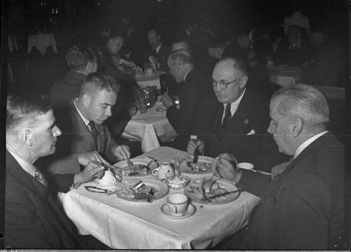 Keywords: SLNSW 27870 Trocadero dinner to Mr Ralph Doyle.jpg en Trocadero dinner to Mr Ralph Doyle 29/6/1948 http //www acmssearch sl nsw gov au/search/itemDetailPaged cgi itemID 27870 item <br/>http //www acmssearch sl nsw gov au/search/itemDetailPaged cgi itemID 37473 album <br/>http //www acmssearch sl nsw gov au/search/itemDetailPaged cgi itemID 395018 collection Creator Sam Hood This image may be used freely without requesting permission The State Library of New South Wales http //www acmssearch sl nsw gov au/search/itemPopLarger cgi itemID 27870 requests acknowledgement that the image is from the collections of the State Library of NSW Photographs 32812 images copied from glass and cellulose nitrate photonegatives The Library first purchased a large collection of negatives from Gladys Hood in 1972 This collection which included nitrate negatives which have subsequently been copied at DG 0N4 NCY 28-61 was transferred to a videodisc in 1991 and each image indexed individually Ted Hood assisted with the indexing; images were also identified using surviving studio registers The videodisc known as the Home Away disc or simply the Hood collection was digitised in 1996 and mounted on the Internet with upgraded index records via the online catalogue in December 1998 Purchased from Gladys Hood 1972 Copyright restrictions may apply - Photographs in this collection created before 1955 are all out of copyright Photographs created after 1955 are in copyright for the life of creator plus 70 years ; Please acknowledge - Mitchell Library State Library of New South Wales and Courtesy copyright holder 395018 Sam Hood photographic collection 1916-ca 1955 Approximately 44 800 negatives ; 7 309 photographic prints ; 3 boxes of textual material ; 6 film reels The Library first purchased a large collection of negatives from Gladys Hood in 1972 This collection which included nitrate negatives which have subsequently been copied at DG 0N4 NCY 28-61 was transferred to a videodisc in 1991 and each image indexed individually Ted Hood assisted with the indexing; images were also identified using surviving studio registers The videodisc known as the Home Away disc or simply the Hood collection was digitised in 1996 and mounted on the Internet with upgraded index records via the online catalogue in December 1998 ; Another collection from Sam Hood's studio was purchased in 1993 from Gladys Hood's descendants This comprised 7300 photoprints PXE 789 and ca 12000 negatives ON 204 Digitisation of important photographs in PXE 789 began Mar 2002 but ON 204 has not been digitised and must be viewed at the Library Samuel J Hood's 1872-1953 claimed to have been born 1870 but the South Australian Birth Index gives date as 20 August 1872 His career as a photographer began in the 1880s ; He ran a successful business in ships portraits these negatives are now held by the Australian National Maritime Museum Sydney and portraits of people in the late nineteenth - early twentieth century The State Library has little representation of this period In 1918 he acquired the Dalny Studio at 124 Pitt Street and began to expand his business into press photography providing photographs for the Sydney Mail the Australasian the Daily Guardian the Daily Telegraph Pictorial the Labor Daily the Sun the Daily News and the Sydney Morning Herald Press photography increasingly came to dominate his business and in 1934 he joined the Labor Daily for a short time as a full-time photographer engaging other staff to look after his studio ; By the mid-1930s most newspapers employed their own photographers and Hood's commissions from the papers began to decline Hood sought other kinds of commissions and won a number of long term advertising and commercial contracts He contributed a number of photographs of Sydney buildings and streets to Building Construction and Australasian Engineer during the late 1930s and early 1940s Hood also had extensive contacts in the entertainment industry who called upon him to document celebrity events and stars as well as theatre advertising Throughout his career he worked at the stock-in-trade for commercial photographers portraits weddings and even funerals ; A number of photographers worked for Dalny Studio some of these include Ernie Bowen Gus Daley Jack Lazern Lethington Maitland as well as Sam's own children Gladys and Ted ; For detailed biographical information about photographer Sam Hood see Sydney exposures through the eyes of Sam Hood his Studio 1925-1950 / Alan Davies Sydney State Library of New South Wales 1991 Out of copyright - Created before 1955 Photographs ; Please acknowledge - Mitchell Library State Library of New South Wales advertising photography; commercial photography; photojournalism 395018 Original item no NCY47/566 yes no PD-Australia PD-1996 Australia Images from the State Library of NSW album 37473 SLNSW media uploaded by User 99of9 Photographs by Sam Hood Trocadero Sydney