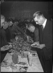 Keywords: SLNSW 27872 Trocadero dinner to Mr Ralph Doyle.jpg en Trocadero dinner to Mr Ralph Doyle 29/6/1948 http //www acmssearch sl nsw gov au/search/itemDetailPaged cgi itemID 27872 item <br/>http //www acmssearch sl nsw gov au/search/itemDetailPaged cgi itemID 37473 album <br/>http //www acmssearch sl nsw gov au/search/itemDetailPaged cgi itemID 395018 collection Creator Sam Hood This image may be used freely without requesting permission The State Library of New South Wales http //www acmssearch sl nsw gov au/search/itemPopLarger cgi itemID 27872 requests acknowledgement that the image is from the collections of the State Library of NSW Photographs 32812 images copied from glass and cellulose nitrate photonegatives The Library first purchased a large collection of negatives from Gladys Hood in 1972 This collection which included nitrate negatives which have subsequently been copied at DG 0N4 NCY 28-61 was transferred to a videodisc in 1991 and each image indexed individually Ted Hood assisted with the indexing; images were also identified using surviving studio registers The videodisc known as the Home Away disc or simply the Hood collection was digitised in 1996 and mounted on the Internet with upgraded index records via the online catalogue in December 1998 Purchased from Gladys Hood 1972 Copyright restrictions may apply - Photographs in this collection created before 1955 are all out of copyright Photographs created after 1955 are in copyright for the life of creator plus 70 years ; Please acknowledge - Mitchell Library State Library of New South Wales and Courtesy copyright holder 395018 Sam Hood photographic collection 1916-ca 1955 Approximately 44 800 negatives ; 7 309 photographic prints ; 3 boxes of textual material ; 6 film reels The Library first purchased a large collection of negatives from Gladys Hood in 1972 This collection which included nitrate negatives which have subsequently been copied at DG 0N4 NCY 28-61 was transferred to a videodisc in 1991 and each image indexed individually Ted Hood assisted with the indexing; images were also identified using surviving studio registers The videodisc known as the Home Away disc or simply the Hood collection was digitised in 1996 and mounted on the Internet with upgraded index records via the online catalogue in December 1998 ; Another collection from Sam Hood's studio was purchased in 1993 from Gladys Hood's descendants This comprised 7300 photoprints PXE 789 and ca 12000 negatives ON 204 Digitisation of important photographs in PXE 789 began Mar 2002 but ON 204 has not been digitised and must be viewed at the Library Samuel J Hood's 1872-1953 claimed to have been born 1870 but the South Australian Birth Index gives date as 20 August 1872 His career as a photographer began in the 1880s ; He ran a successful business in ships portraits these negatives are now held by the Australian National Maritime Museum Sydney and portraits of people in the late nineteenth - early twentieth century The State Library has little representation of this period In 1918 he acquired the Dalny Studio at 124 Pitt Street and began to expand his business into press photography providing photographs for the Sydney Mail the Australasian the Daily Guardian the Daily Telegraph Pictorial the Labor Daily the Sun the Daily News and the Sydney Morning Herald Press photography increasingly came to dominate his business and in 1934 he joined the Labor Daily for a short time as a full-time photographer engaging other staff to look after his studio ; By the mid-1930s most newspapers employed their own photographers and Hood's commissions from the papers began to decline Hood sought other kinds of commissions and won a number of long term advertising and commercial contracts He contributed a number of photographs of Sydney buildings and streets to Building Construction and Australasian Engineer during the late 1930s and early 1940s Hood also had extensive contacts in the entertainment industry who called upon him to document celebrity events and stars as well as theatre advertising Throughout his career he worked at the stock-in-trade for commercial photographers portraits weddings and even funerals ; A number of photographers worked for Dalny Studio some of these include Ernie Bowen Gus Daley Jack Lazern Lethington Maitland as well as Sam's own children Gladys and Ted ; For detailed biographical information about photographer Sam Hood see Sydney exposures through the eyes of Sam Hood his Studio 1925-1950 / Alan Davies Sydney State Library of New South Wales 1991 Out of copyright - Created before 1955 Photographs ; Please acknowledge - Mitchell Library State Library of New South Wales advertising photography; commercial photography; photojournalism 395018 Original item no NCY47/567 yes no PD-Australia PD-1996 Australia Images from the State Library of NSW album 37473 SLNSW media uploaded by User 99of9 Photographs by Sam Hood Trocadero Sydney