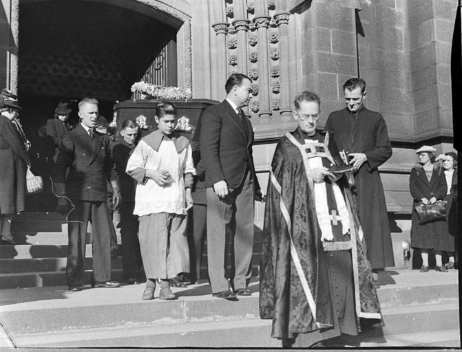 | Keywords: SLNSW 34033 Mrs Megnuss ie Magnus funeral St Marys Cathedral.jpg en Mrs Megnus's i e Magnus funeral St Mary's Cathedral January 1941 http //www acmssearch sl nsw gov au/search/itemDetailPaged cgi itemID 34033 item <br/>http //www acmssearch sl nsw gov au/search/itemDetailPaged cgi itemID 37473 album <br/>http //www acmssearch sl nsw gov au/search/itemDetailPaged cgi itemID 395018 collection Creator Sam Hood This image may be used freely without requesting permission The State Library of New South Wales http //www acmssearch sl nsw gov au/search/itemPopLarger cgi itemID 34033 requests acknowledgement that the image is from the collections of the State Library of NSW Photographs 32812 images copied from glass and cellulose nitrate photonegatives The Library first purchased a large collection of negatives from Gladys Hood in 1972 This collection which included nitrate negatives which have subsequently been copied at DG 0N4 NCY 28-61 was transferred to a videodisc in 1991 and each image indexed individually Ted Hood assisted with the indexing; images were also identified using surviving studio registers The videodisc known as the Home Away disc or simply the Hood collection was digitised in 1996 and mounted on the Internet with upgraded index records via the online catalogue in December 1998 Purchased from Gladys Hood 1972 Copyright restrictions may apply - Photographs in this collection created before 1955 are all out of copyright Photographs created after 1955 are in copyright for the life of creator plus 70 years ; Please acknowledge - Mitchell Library State Library of New South Wales and Courtesy copyright holder 395018 Sam Hood photographic collection 1916-ca 1955 Approximately 44 800 negatives ; 7 309 photographic prints ; 3 boxes of textual material ; 6 film reels The Library first purchased a large collection of negatives from Gladys Hood in 1972 This collection which included nitrate negatives which have subsequently been copied at DG 0N4 NCY 28-61 was transferred to a videodisc in 1991 and each image indexed individually Ted Hood assisted with the indexing; images were also identified using surviving studio registers The videodisc known as the Home Away disc or simply the Hood collection was digitised in 1996 and mounted on the Internet with upgraded index records via the online catalogue in December 1998 ; Another collection from Sam Hood's studio was purchased in 1993 from Gladys Hood's descendants This comprised 7300 photoprints PXE 789 and ca 12000 negatives ON 204 Digitisation of important photographs in PXE 789 began Mar 2002 but ON 204 has not been digitised and must be viewed at the Library Samuel J Hood's 1872-1953 claimed to have been born 1870 but the South Australian Birth Index gives date as 20 August 1872 His career as a photographer began in the 1880s ; He ran a successful business in ships portraits these negatives are now held by the Australian National Maritime Museum Sydney and portraits of people in the late nineteenth - early twentieth century The State Library has little representation of this period In 1918 he acquired the Dalny Studio at 124 Pitt Street and began to expand his business into press photography providing photographs for the Sydney Mail the Australasian the Daily Guardian the Daily Telegraph Pictorial the Labor Daily the Sun the Daily News and the Sydney Morning Herald Press photography increasingly came to dominate his business and in 1934 he joined the Labor Daily for a short time as a full-time photographer engaging other staff to look after his studio ; By the mid-1930s most newspapers employed their own photographers and Hood's commissions from the papers began to decline Hood sought other kinds of commissions and won a number of long term advertising and commercial contracts He contributed a number of photographs of Sydney buildings and streets to Building Construction and Australasian Engineer during the late 1930s and early 1940s Hood also had extensive contacts in the entertainment industry who called upon him to document celebrity events and stars as well as theatre advertising Throughout his career he worked at the stock-in-trade for commercial photographers portraits weddings and even funerals ; A number of photographers worked for Dalny Studio some of these include Ernie Bowen Gus Daley Jack Lazern Lethington Maitland as well as Sam's own children Gladys and Ted ; For detailed biographical information about photographer Sam Hood see Sydney exposures through the eyes of Sam Hood his Studio 1925-1950 / Alan Davies Sydney State Library of New South Wales 1991 Out of copyright - Created before 1955 Photographs ; Please acknowledge - Mitchell Library State Library of New South Wales advertising photography; commercial photography; photojournalism 395018 Original item no NCY58/340 yes no PD-Australia PD-1996 Australia Images from the State Library of NSW album 37473 SLNSW media uploaded by User 99of9 Photographs by Sam Hood |