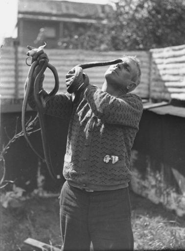 | Keywords: SLNSW 42405 George Cann eyeball to eyeball with a black snake.jpg en George Cann eyeball to eyeball with a black snake 1934-09-05 http //www acmssearch sl nsw gov au/search/itemDetailPaged cgi itemID 42405 item <br/>http //www acmssearch sl nsw gov au/search/itemDetailPaged cgi itemID 37473 album <br/>http //www acmssearch sl nsw gov au/search/itemDetailPaged cgi itemID 395018 collection Creator Sam Hood This image may be used freely without requesting permission The State Library of New South Wales http //www acmssearch sl nsw gov au/search/itemPopLarger cgi itemID 42405 requests acknowledgement that the image is from the collections of the State Library of NSW User 99of9/SLNSW_extra_metadata_template 42405 George Cann eyeball to eyeball with a black snake Home and Away - 395 5 September 1934 Photographs 32812 images copied from glass and cellulose nitrate photonegatives The Library first purchased a large collection of negatives from Gladys Hood in 1972 This collection which included nitrate negatives which have subsequently been copied at DG 0N4 NCY 28-61 was transferred to a videodisc in 1991 and each image indexed individually Ted Hood assisted with the indexing; images were also identified using surviving studio registers The videodisc known as the Home Away disc or simply the Hood collection was digitised in 1996 and mounted on the Internet with upgraded index records via the online catalogue in December 1998 Purchased from Gladys Hood 1972 Copyright restrictions may apply - Photographs in this collection created before 1955 are all out of copyright Photographs created after 1955 are in copyright for the life of creator plus 70 years ; Please acknowledge - Mitchell Library State Library of New South Wales and Courtesy copyright holder 395018 Sam Hood photographic collection 1916-ca 1955 Approximately 44 800 negatives ; 7 309 photographic prints ; 3 boxes of textual material ; 6 film reels The Library first purchased a large collection of negatives from Gladys Hood in 1972 This collection which included nitrate negatives which have subsequently been copied at DG 0N4 NCY 28-61 was transferred to a videodisc in 1991 and each image indexed individually Ted Hood assisted with the indexing; images were also identified using surviving studio registers The videodisc known as the Home Away disc or simply the Hood collection was digitised in 1996 and mounted on the Internet with upgraded index records via the online catalogue in December 1998 ; Another collection from Sam Hood's studio was purchased in 1993 from Gladys Hood's descendants This comprised 7300 photoprints PXE 789 and ca 12000 negatives ON 204 Digitisation of important photographs in PXE 789 began Mar 2002 but ON 204 has not been digitised and must be viewed at the Library Samuel J Hood's 1872-1953 claimed to have been born 1870 but the South Australian Birth Index gives date as 20 August 1872 His career as a photographer began in the 1880s ; He ran a successful business in ships portraits these negatives are now held by the Australian National Maritime Museum Sydney and portraits of people in the late nineteenth - early twentieth century The State Library has little representation of this period In 1918 he acquired the Dalny Studio at 124 Pitt Street and began to expand his business into press photography providing photographs for the Sydney Mail the Australasian the Daily Guardian the Daily Telegraph Pictorial the Labor Daily the Sun the Daily News and the Sydney Morning Herald Press photography increasingly came to dominate his business and in 1934 he joined the Labor Daily for a short time as a full-time photographer engaging other staff to look after his studio ; By the mid-1930s most newspapers employed their own photographers and Hood's commissions from the papers began to decline Hood sought other kinds of commissions and won a number of long term advertising and commercial contracts He contributed a number of photographs of Sydney buildings and streets to Building Construction and Australasian Engineer during the late 1930s and early 1940s Hood also had extensive contacts in the entertainment industry who called upon him to document celebrity events and stars as well as theatre advertising Throughout his career he worked at the stock-in-trade for commercial photographers portraits weddings and even funerals ; A number of photographers worked for Dalny Studio some of these include Ernie Bowen Gus Daley Jack Lazern Lethington Maitland as well as Sam's own children Gladys and Ted ; For detailed biographical information about photographer Sam Hood see Sydney exposures through the eyes of Sam Hood his Studio 1925-1950 / Alan Davies Sydney State Library of New South Wales 1991 Out of copyright - Created before 1955 Photographs ; Please acknowledge - Mitchell Library State Library of New South Wales advertising photography; commercial photography; photojournalism 395018 Original item no DG ON4/395 SLNSW-image 42405 yes PD-Australia PD-1996 Australia Images from the State Library of NSW album 37473 SLNSW media uploaded by User 99of9 Photographs by Sam Hood |