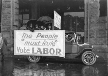 View Original:SLNSW 42554 Election posters on old Chevrolet truck The people must rule vote Labor.jpg (1400x988)