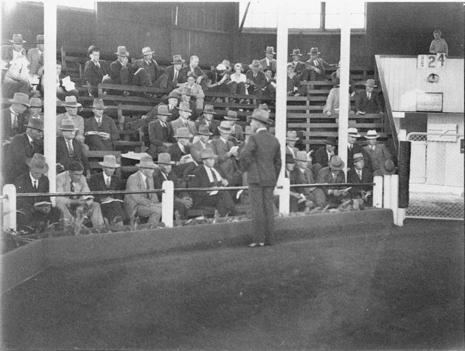 | Keywords: SLNSW 51510 Briefing before the horse auctions.jpg en Briefing before the horse auctions circa 1925 1957 http //www acmssearch sl nsw gov au/search/itemDetailPaged cgi itemID 51510 item <br/>http //www acmssearch sl nsw gov au/search/itemDetailPaged cgi itemID 37473 album <br/>http //www acmssearch sl nsw gov au/search/itemDetailPaged cgi itemID 395018 collection Hood Ted 1911-2000 This image may be used freely without requesting permission The State Library of New South Wales http //www acmssearch sl nsw gov au/search/itemPopLarger cgi itemID 51510 requests acknowledgement that the image is from the collections of the State Library of NSW Photographs 32812 images copied from glass and cellulose nitrate photonegatives The Library first purchased a large collection of negatives from Gladys Hood in 1972 This collection which included nitrate negatives which have subsequently been copied at DG 0N4 NCY 28-61 was transferred to a videodisc in 1991 and each image indexed individually Ted Hood assisted with the indexing; images were also identified using surviving studio registers The videodisc known as the Home Away disc or simply the Hood collection was digitised in 1996 and mounted on the Internet with upgraded index records via the online catalogue in December 1998 Purchased from Gladys Hood 1972 Copyright restrictions may apply - Photographs in this collection created before 1955 are all out of copyright Photographs created after 1955 are in copyright for the life of creator plus 70 years ; Please acknowledge - Mitchell Library State Library of New South Wales and Courtesy copyright holder 395018 Sam Hood photographic collection 1916-ca 1955 Approximately 44 800 negatives ; 7 309 photographic prints ; 3 boxes of textual material ; 6 film reels The Library first purchased a large collection of negatives from Gladys Hood in 1972 This collection which included nitrate negatives which have subsequently been copied at DG 0N4 NCY 28-61 was transferred to a videodisc in 1991 and each image indexed individually Ted Hood assisted with the indexing; images were also identified using surviving studio registers The videodisc known as the Home Away disc or simply the Hood collection was digitised in 1996 and mounted on the Internet with upgraded index records via the online catalogue in December 1998 ; Another collection from Sam Hood's studio was purchased in 1993 from Gladys Hood's descendants This comprised 7300 photoprints PXE 789 and ca 12000 negatives ON 204 Digitisation of important photographs in PXE 789 began Mar 2002 but ON 204 has not been digitised and must be viewed at the Library Samuel J Hood's 1872-1953 claimed to have been born 1870 but the South Australian Birth Index gives date as 20 August 1872 His career as a photographer began in the 1880s ; He ran a successful business in ships portraits these negatives are now held by the Australian National Maritime Museum Sydney and portraits of people in the late nineteenth - early twentieth century The State Library has little representation of this period In 1918 he acquired the Dalny Studio at 124 Pitt Street and began to expand his business into press photography providing photographs for the Sydney Mail the Australasian the Daily Guardian the Daily Telegraph Pictorial the Labor Daily the Sun the Daily News and the Sydney Morning Herald Press photography increasingly came to dominate his business and in 1934 he joined the Labor Daily for a short time as a full-time photographer engaging other staff to look after his studio ; By the mid-1930s most newspapers employed their own photographers and Hood's commissions from the papers began to decline Hood sought other kinds of commissions and won a number of long term advertising and commercial contracts He contributed a number of photographs of Sydney buildings and streets to Building Construction and Australasian Engineer during the late 1930s and early 1940s Hood also had extensive contacts in the entertainment industry who called upon him to document celebrity events and stars as well as theatre advertising Throughout his career he worked at the stock-in-trade for commercial photographers portraits weddings and even funerals ; A number of photographers worked for Dalny Studio some of these include Ernie Bowen Gus Daley Jack Lazern Lethington Maitland as well as Sam's own children Gladys and Ted ; For detailed biographical information about photographer Sam Hood see Sydney exposures through the eyes of Sam Hood his Studio 1925-1950 / Alan Davies Sydney State Library of New South Wales 1991 Out of copyright - Created before 1955 Photographs ; Please acknowledge - Mitchell Library State Library of New South Wales advertising photography; commercial photography; photojournalism 395018 Original item no DG ON4/3211 yes no PD-Australia PD-1996 Australia Images from the State Library of NSW album 37473 SLNSW media uploaded by User 99of9 Photographs by Sam Hood |