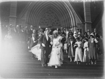 Keywords: SLNSW 51878 Unidentified bridal couple on steps of St Marys Cathedral.jpg en Unidentified bridal couple on steps of St Mary's Cathedral early 1930s http //www acmssearch sl nsw gov au/search/itemDetailPaged cgi itemID 51878 item <br/>http //www acmssearch sl nsw gov au/search/itemDetailPaged cgi itemID 37473 album <br/>http //www acmssearch sl nsw gov au/search/itemDetailPaged cgi itemID 395018 collection Hood Ted 1911-2000 This image may be used freely without requesting permission The State Library of New South Wales http //www acmssearch sl nsw gov au/search/itemPopLarger cgi itemID 51878 requests acknowledgement that the image is from the collections of the State Library of NSW Photographs 32812 images copied from glass and cellulose nitrate photonegatives The Library first purchased a large collection of negatives from Gladys Hood in 1972 This collection which included nitrate negatives which have subsequently been copied at DG 0N4 NCY 28-61 was transferred to a videodisc in 1991 and each image indexed individually Ted Hood assisted with the indexing; images were also identified using surviving studio registers The videodisc known as the Home Away disc or simply the Hood collection was digitised in 1996 and mounted on the Internet with upgraded index records via the online catalogue in December 1998 Purchased from Gladys Hood 1972 Copyright restrictions may apply - Photographs in this collection created before 1955 are all out of copyright Photographs created after 1955 are in copyright for the life of creator plus 70 years ; Please acknowledge - Mitchell Library State Library of New South Wales and Courtesy copyright holder 395018 Sam Hood photographic collection 1916-ca 1955 Approximately 44 800 negatives ; 7 309 photographic prints ; 3 boxes of textual material ; 6 film reels The Library first purchased a large collection of negatives from Gladys Hood in 1972 This collection which included nitrate negatives which have subsequently been copied at DG 0N4 NCY 28-61 was transferred to a videodisc in 1991 and each image indexed individually Ted Hood assisted with the indexing; images were also identified using surviving studio registers The videodisc known as the Home Away disc or simply the Hood collection was digitised in 1996 and mounted on the Internet with upgraded index records via the online catalogue in December 1998 ; Another collection from Sam Hood's studio was purchased in 1993 from Gladys Hood's descendants This comprised 7300 photoprints PXE 789 and ca 12000 negatives ON 204 Digitisation of important photographs in PXE 789 began Mar 2002 but ON 204 has not been digitised and must be viewed at the Library Samuel J Hood's 1872-1953 claimed to have been born 1870 but the South Australian Birth Index gives date as 20 August 1872 His career as a photographer began in the 1880s ; He ran a successful business in ships portraits these negatives are now held by the Australian National Maritime Museum Sydney and portraits of people in the late nineteenth - early twentieth century The State Library has little representation of this period In 1918 he acquired the Dalny Studio at 124 Pitt Street and began to expand his business into press photography providing photographs for the Sydney Mail the Australasian the Daily Guardian the Daily Telegraph Pictorial the Labor Daily the Sun the Daily News and the Sydney Morning Herald Press photography increasingly came to dominate his business and in 1934 he joined the Labor Daily for a short time as a full-time photographer engaging other staff to look after his studio ; By the mid-1930s most newspapers employed their own photographers and Hood's commissions from the papers began to decline Hood sought other kinds of commissions and won a number of long term advertising and commercial contracts He contributed a number of photographs of Sydney buildings and streets to Building Construction and Australasian Engineer during the late 1930s and early 1940s Hood also had extensive contacts in the entertainment industry who called upon him to document celebrity events and stars as well as theatre advertising Throughout his career he worked at the stock-in-trade for commercial photographers portraits weddings and even funerals ; A number of photographers worked for Dalny Studio some of these include Ernie Bowen Gus Daley Jack Lazern Lethington Maitland as well as Sam's own children Gladys and Ted ; For detailed biographical information about photographer Sam Hood see Sydney exposures through the eyes of Sam Hood his Studio 1925-1950 / Alan Davies Sydney State Library of New South Wales 1991 Out of copyright - Created before 1955 Photographs ; Please acknowledge - Mitchell Library State Library of New South Wales advertising photography; commercial photography; photojournalism 395018 Original item no DG ON4/3391 yes no PD-Australia PD-1996 Australia Images from the State Library of NSW album 37473 SLNSW media uploaded by User 99of9 Photographs by Sam Hood |