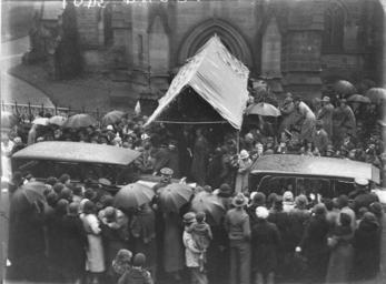 | Keywords: SLNSW 51900 Crowds wait in rain to see WhitneyFriend bridal couple leave St Johns Church.jpg en Crowds wait in rain to see Whitney-Friend bridal couple leave St John's Church 16 July 1934 http //www acmssearch sl nsw gov au/search/itemDetailPaged cgi itemID 51900 item <br/>http //www acmssearch sl nsw gov au/search/itemDetailPaged cgi itemID 37473 album <br/>http //www acmssearch sl nsw gov au/search/itemDetailPaged cgi itemID 395018 collection Hood Ted 1911-2000 This image may be used freely without requesting permission The State Library of New South Wales http //www acmssearch sl nsw gov au/search/itemPopLarger cgi itemID 51900 requests acknowledgement that the image is from the collections of the State Library of NSW Photographs 32812 images copied from glass and cellulose nitrate photonegatives The Library first purchased a large collection of negatives from Gladys Hood in 1972 This collection which included nitrate negatives which have subsequently been copied at DG 0N4 NCY 28-61 was transferred to a videodisc in 1991 and each image indexed individually Ted Hood assisted with the indexing; images were also identified using surviving studio registers The videodisc known as the Home Away disc or simply the Hood collection was digitised in 1996 and mounted on the Internet with upgraded index records via the online catalogue in December 1998 Purchased from Gladys Hood 1972 Copyright restrictions may apply - Photographs in this collection created before 1955 are all out of copyright Photographs created after 1955 are in copyright for the life of creator plus 70 years ; Please acknowledge - Mitchell Library State Library of New South Wales and Courtesy copyright holder 395018 Sam Hood photographic collection 1916-ca 1955 Approximately 44 800 negatives ; 7 309 photographic prints ; 3 boxes of textual material ; 6 film reels The Library first purchased a large collection of negatives from Gladys Hood in 1972 This collection which included nitrate negatives which have subsequently been copied at DG 0N4 NCY 28-61 was transferred to a videodisc in 1991 and each image indexed individually Ted Hood assisted with the indexing; images were also identified using surviving studio registers The videodisc known as the Home Away disc or simply the Hood collection was digitised in 1996 and mounted on the Internet with upgraded index records via the online catalogue in December 1998 ; Another collection from Sam Hood's studio was purchased in 1993 from Gladys Hood's descendants This comprised 7300 photoprints PXE 789 and ca 12000 negatives ON 204 Digitisation of important photographs in PXE 789 began Mar 2002 but ON 204 has not been digitised and must be viewed at the Library Samuel J Hood's 1872-1953 claimed to have been born 1870 but the South Australian Birth Index gives date as 20 August 1872 His career as a photographer began in the 1880s ; He ran a successful business in ships portraits these negatives are now held by the Australian National Maritime Museum Sydney and portraits of people in the late nineteenth - early twentieth century The State Library has little representation of this period In 1918 he acquired the Dalny Studio at 124 Pitt Street and began to expand his business into press photography providing photographs for the Sydney Mail the Australasian the Daily Guardian the Daily Telegraph Pictorial the Labor Daily the Sun the Daily News and the Sydney Morning Herald Press photography increasingly came to dominate his business and in 1934 he joined the Labor Daily for a short time as a full-time photographer engaging other staff to look after his studio ; By the mid-1930s most newspapers employed their own photographers and Hood's commissions from the papers began to decline Hood sought other kinds of commissions and won a number of long term advertising and commercial contracts He contributed a number of photographs of Sydney buildings and streets to Building Construction and Australasian Engineer during the late 1930s and early 1940s Hood also had extensive contacts in the entertainment industry who called upon him to document celebrity events and stars as well as theatre advertising Throughout his career he worked at the stock-in-trade for commercial photographers portraits weddings and even funerals ; A number of photographers worked for Dalny Studio some of these include Ernie Bowen Gus Daley Jack Lazern Lethington Maitland as well as Sam's own children Gladys and Ted ; For detailed biographical information about photographer Sam Hood see Sydney exposures through the eyes of Sam Hood his Studio 1925-1950 / Alan Davies Sydney State Library of New South Wales 1991 Out of copyright - Created before 1955 Photographs ; Please acknowledge - Mitchell Library State Library of New South Wales advertising photography; commercial photography; photojournalism 395018 Original item no DG ON4/33407 yes no PD-Australia PD-1996 Australia Images from the State Library of NSW album 37473 SLNSW media uploaded by User 99of9 Photographs by Sam Hood |