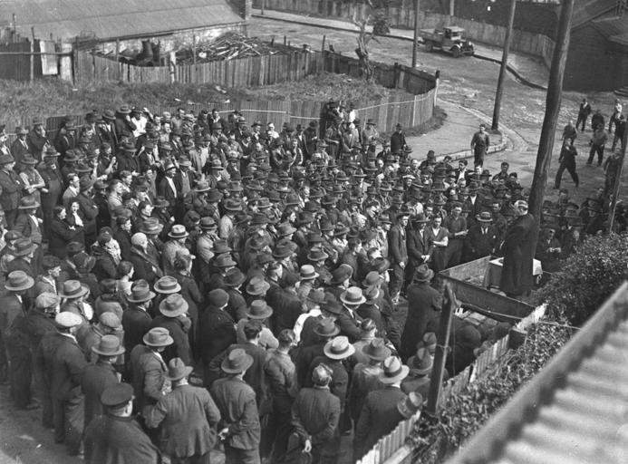 | Keywords: SLNSW 52264 Mass rally of Eveleigh railway workers listens to an election speech from Jack Lang.jpg en Mass rally of Eveleigh railway workers listens to an election speech from Jack Lang 1934-08-22 http //www acmssearch sl nsw gov au/search/itemDetailPaged cgi itemID 52264 item <br/>http //www acmssearch sl nsw gov au/search/itemDetailPaged cgi itemID 37473 album <br/>http //www acmssearch sl nsw gov au/search/itemDetailPaged cgi itemID 395018 collection Creator Sam Hood This image may be used freely without requesting permission The State Library of New South Wales http //www acmssearch sl nsw gov au/search/itemPopLarger cgi itemID 52264 requests acknowledgement that the image is from the collections of the State Library of NSW User 99of9/SLNSW_extra_metadata_template 52264 Mass rally of Eveleigh railway workers listens to an election speech from Jack Lang Home and Away - 351 22 August 1934 Photographs 32812 images copied from glass and cellulose nitrate photonegatives The Library first purchased a large collection of negatives from Gladys Hood in 1972 This collection which included nitrate negatives which have subsequently been copied at DG 0N4 NCY 28-61 was transferred to a videodisc in 1991 and each image indexed individually Ted Hood assisted with the indexing; images were also identified using surviving studio registers The videodisc known as the Home Away disc or simply the Hood collection was digitised in 1996 and mounted on the Internet with upgraded index records via the online catalogue in December 1998 Purchased from Gladys Hood 1972 Copyright restrictions may apply - Photographs in this collection created before 1955 are all out of copyright Photographs created after 1955 are in copyright for the life of creator plus 70 years ; Please acknowledge - Mitchell Library State Library of New South Wales and Courtesy copyright holder 395018 Sam Hood photographic collection 1916-ca 1955 Approximately 44 800 negatives ; 7 309 photographic prints ; 3 boxes of textual material ; 6 film reels The Library first purchased a large collection of negatives from Gladys Hood in 1972 This collection which included nitrate negatives which have subsequently been copied at DG 0N4 NCY 28-61 was transferred to a videodisc in 1991 and each image indexed individually Ted Hood assisted with the indexing; images were also identified using surviving studio registers The videodisc known as the Home Away disc or simply the Hood collection was digitised in 1996 and mounted on the Internet with upgraded index records via the online catalogue in December 1998 ; Another collection from Sam Hood's studio was purchased in 1993 from Gladys Hood's descendants This comprised 7300 photoprints PXE 789 and ca 12000 negatives ON 204 Digitisation of important photographs in PXE 789 began Mar 2002 but ON 204 has not been digitised and must be viewed at the Library Samuel J Hood's 1872-1953 claimed to have been born 1870 but the South Australian Birth Index gives date as 20 August 1872 His career as a photographer began in the 1880s ; He ran a successful business in ships portraits these negatives are now held by the Australian National Maritime Museum Sydney and portraits of people in the late nineteenth - early twentieth century The State Library has little representation of this period In 1918 he acquired the Dalny Studio at 124 Pitt Street and began to expand his business into press photography providing photographs for the Sydney Mail the Australasian the Daily Guardian the Daily Telegraph Pictorial the Labor Daily the Sun the Daily News and the Sydney Morning Herald Press photography increasingly came to dominate his business and in 1934 he joined the Labor Daily for a short time as a full-time photographer engaging other staff to look after his studio ; By the mid-1930s most newspapers employed their own photographers and Hood's commissions from the papers began to decline Hood sought other kinds of commissions and won a number of long term advertising and commercial contracts He contributed a number of photographs of Sydney buildings and streets to Building Construction and Australasian Engineer during the late 1930s and early 1940s Hood also had extensive contacts in the entertainment industry who called upon him to document celebrity events and stars as well as theatre advertising Throughout his career he worked at the stock-in-trade for commercial photographers portraits weddings and even funerals ; A number of photographers worked for Dalny Studio some of these include Ernie Bowen Gus Daley Jack Lazern Lethington Maitland as well as Sam's own children Gladys and Ted ; For detailed biographical information about photographer Sam Hood see Sydney exposures through the eyes of Sam Hood his Studio 1925-1950 / Alan Davies Sydney State Library of New South Wales 1991 Out of copyright - Created before 1955 Photographs ; Please acknowledge - Mitchell Library State Library of New South Wales advertising photography; commercial photography; photojournalism 395018 Original item no DG ON4/351 SLNSW-image 52264 yes PD-Australia PD-1996 Australia Images from the State Library of NSW album 37473 SLNSW media uploaded by User 99of9 Photographs by Sam Hood Election campaigns in Australia Jack Lang New South Wales politician |
