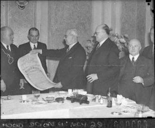 | Keywords: SLNSW 52416 Presentation of an illuminated address to Stuart F Doyle Managing Director Union Theatres Ltd by the Australian Cinema Pioneers.jpg  en Presentation of an illuminated address to Stuart F Doyle Managing Director Union Theatres Ltd by the Australian Cinema Pioneers 12 August 1937 http //www acmssearch sl nsw gov au/search/itemDetailPaged cgi itemID 52416 item <br/>http //www acmssearch sl nsw gov au/search/itemDetailPaged cgi itemID 37473 album <br/>http //www acmssearch sl nsw gov au/search/itemDetailPaged cgi itemID 395018 collection Creator Sam Hood This image may be used freely without requesting permission The State Library of New South Wales http //www acmssearch sl nsw gov au/search/itemPopLarger cgi itemID 52416 requests acknowledgement that the image is from the collections of the State Library of NSW User 99of9/SLNSW_extra_metadata_template 52416 Presentation of an illuminated address to Stuart F Doyle Managing Director Union Theatres Ltd by the Australian Cinema Pioneers Home and Away - 8538 12 August 1937 Photographs 32812 images copied from glass and cellulose nitrate photonegatives The Library first purchased a large collection of negatives from Gladys Hood in 1972 This collection which included nitrate negatives which have subsequently been copied at DG 0N4 NCY 28-61 was transferred to a videodisc in 1991 and each image indexed individually Ted Hood assisted with the indexing; images were also identified using surviving studio registers The videodisc known as the Home Away disc or simply the Hood collection was digitised in 1996 and mounted on the Internet with upgraded index records via the online catalogue in December 1998 Purchased from Gladys Hood 1972 Copyright restrictions may apply - Photographs in this collection created before 1955 are all out of copyright Photographs created after 1955 are in copyright for the life of creator plus 70 years ; Please acknowledge - Mitchell Library State Library of New South Wales and Courtesy copyright holder 395018 Sam Hood photographic collection 1916-ca 1955 Approximately 44 800 negatives ; 7 309 photographic prints ; 3 boxes of textual material ; 6 film reels The Library first purchased a large collection of negatives from Gladys Hood in 1972 This collection which included nitrate negatives which have subsequently been copied at DG 0N4 NCY 28-61 was transferred to a videodisc in 1991 and each image indexed individually Ted Hood assisted with the indexing; images were also identified using surviving studio registers The videodisc known as the Home Away disc or simply the Hood collection was digitised in 1996 and mounted on the Internet with upgraded index records via the online catalogue in December 1998 ; Another collection from Sam Hood's studio was purchased in 1993 from Gladys Hood's descendants This comprised 7300 photoprints PXE 789 and ca 12000 negatives ON 204 Digitisation of important photographs in PXE 789 began Mar 2002 but ON 204 has not been digitised and must be viewed at the Library Samuel J Hood's 1872-1953 claimed to have been born 1870 but the South Australian Birth Index gives date as 20 August 1872 His career as a photographer began in the 1880s ; He ran a successful business in ships portraits these negatives are now held by the Australian National Maritime Museum Sydney and portraits of people in the late nineteenth - early twentieth century The State Library has little representation of this period In 1918 he acquired the Dalny Studio at 124 Pitt Street and began to expand his business into press photography providing photographs for the Sydney Mail the Australasian the Daily Guardian the Daily Telegraph Pictorial the Labor Daily the Sun the Daily News and the Sydney Morning Herald Press photography increasingly came to dominate his business and in 1934 he joined the Labor Daily for a short time as a full-time photographer engaging other staff to look after his studio ; By the mid-1930s most newspapers employed their own photographers and Hood's commissions from the papers began to decline Hood sought other kinds of commissions and won a number of long term advertising and commercial contracts He contributed a number of photographs of Sydney buildings and streets to Building Construction and Australasian Engineer during the late 1930s and early 1940s Hood also had extensive contacts in the entertainment industry who called upon him to document celebrity events and stars as well as theatre advertising Throughout his career he worked at the stock-in-trade for commercial photographers portraits weddings and even funerals ; A number of photographers worked for Dalny Studio some of these include Ernie Bowen Gus Daley Jack Lazern Lethington Maitland as well as Sam's own children Gladys and Ted ; For detailed biographical information about photographer Sam Hood see Sydney exposures through the eyes of Sam Hood his Studio 1925-1950 / Alan Davies Sydney State Library of New South Wales 1991 Out of copyright - Created before 1955 Photographs ; Please acknowledge - Mitchell Library State Library of New South Wales advertising photography; commercial photography; photojournalism 395018 Original item no NCY29/63 yes no PD-Australia PD-1996 Australia Images from the State Library of NSW album 37473 SLNSW media uploaded by User 99of9 Photographs by Sam Hood |