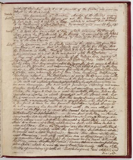 | Keywords: SLNSW 811246 p25.jpg Aggregated Collection Textual Records Graphic Materials The First Fleet consisting of 11 vessels was the largest single contingent of ships to sail into the Pacific Ocean Its purpose was to found a convict settlement on the east coast of Australia at Botany Bay ; The First Fleet sailed from England on 13 May 1787 carrying more than 1 500 people and arrived at Botany Bay eight months later on 18 January 1788 Governor Arthur Phillip rejected Botany Bay choosing instead Port Jackson to the north as the sight for the new colony; they arrived on 26 January 1788 The Fleet consisted of two naval escorts HMS Supply and the flagship HMS Sirius carrying the Governor; six convict transports the Alexander Charlotte Friendship Lady Penrhyn Prince of Wales and the Scarborough; and three storeships the Borrowdale Fishburn and Golden Grove This selection comprises ten of the eleven known First Fleet journals including two versions of Philip Gidley King's journal; and correspondence and artworks of First Fleeters First Fleet 1787-1788 ; New South Wales -- History -- 1788-1851 811246 p 25 Journal of George Bouchier Worgan |