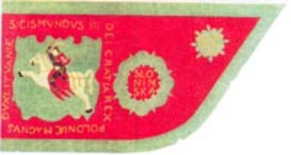| Keywords: Słonim, Pahonia. Слонім, Пагоня (1747) .jpg Слонімскага павету з «Пагоняй» «Pahonia» en Banner of Słonim paviet Цітоў А Сф агістыка і ге альдыка Бела усі енск РІВШ БДУ 1999 http //svyatavit iatp by/Magdeburg/Pagonja/pogonia html author century 18 PD-old-100 Historical flags of Belarus Historical images of Pahonia Flags of Grand Duchy of Lithuania |