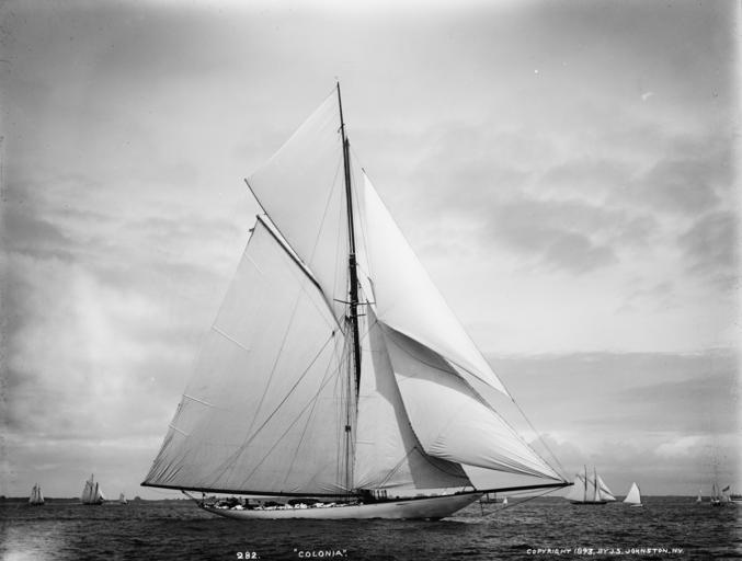 | Keywords: Sloop Colonia-7.jpg Nathanael Greene Herreshoff design 1893 built as a defence candidate for the America's Cup She is pictured here on the day of the Ogden Goelet Cup in Newport RI which she won in a drifting match which ended in fog and a comical quiproquo with the flagship over which of the four cup contenders had actually won http //query nytimes com/mem/archive-free/pdf res FA0815F63F5A1A738DDDAA0994D0405B8385F0D3 New York Times - Colonia won the Goelet Cup LOC-image det 4a21578 Creator John S Johnston 1893-08-11 PD-Detroit Colonia ship 1893 Boats under sail Photographs by John S Johnston Black and white photographs |