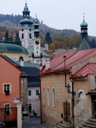 Keywords: slovakia church city street lamp old town view