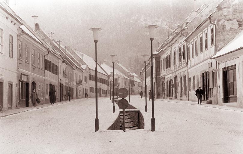 Keywords: Slovenske Konjice pozimi 1961 (3).jpg Slovenske Konjice pozimi 272162 1961-01-27 creator Jože Gal PD-Slovenia 1961 in Slovenia Black and white photographs of Slovenske Konjice Streets in Slovenske Konjice Snowy roads in Slovenia Snow-covered roofs in Slovenia Pedestrians in Slovenske Konjice No parking signs in Slovenia Street lights in Slovenia Photographs by Jože Gal Keep right road signs in Slovenia |