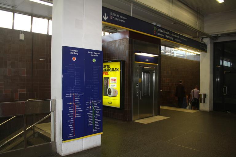 Keywords: Slussen Södermalmstorg tunnelbana.jpg sv Nedgång till tunnelbanan från Södermalmstorg i Slussen 2016-07-22 19 35 02 own AleWi other versions cc-zero Slussen Metro station