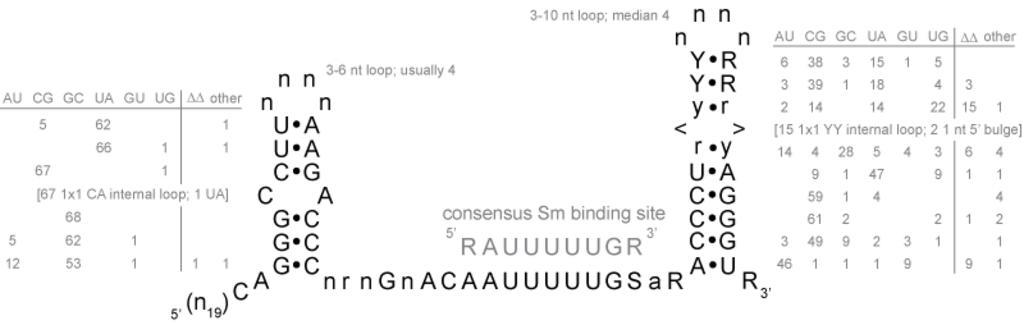 | Keywords: SmY-structure.png Consensus secondary structure of the SmY RNA See legend Rfam database Author Sean R Eddy Public domain Transferred from http //en wikipedia org en wikipedia; transferred to Commons by User Stevenfruitsmaak using http //tools wikimedia de/~magnus/commonshelper php CommonsHelper 2008-11-19 Original uploader was Seaneddy at http //en wikipedia org en wikipedia Released into the public domain by the author diagram en wikipedia Seaneddy original upload log page en wikipedia SmY-structure png 2008-11-19 18 59 Seaneddy 800×254× 28508 bytes <nowiki>Consensus secondary structure of SmY RNAs Sean R Eddy; public domain </nowiki> 2008-11-15 17 33 Seaneddy 800×254× 28504 bytes <nowiki>SmY RNA consensus structure Sean R Eddy; public domain </nowiki> 2008-11-08 15 20 Seaneddy 800×219× 32839 bytes <nowiki>Consensus structure of the SmY RNA Author Sean R Eddy </nowiki> 2008-11-08 15 13 Seaneddy 507×139× 15250 bytes <nowiki>Consensus secondary structure of the SmY RNA Rfam database Author Sean R Eddy Public domain </nowiki> Non-coding RNA |