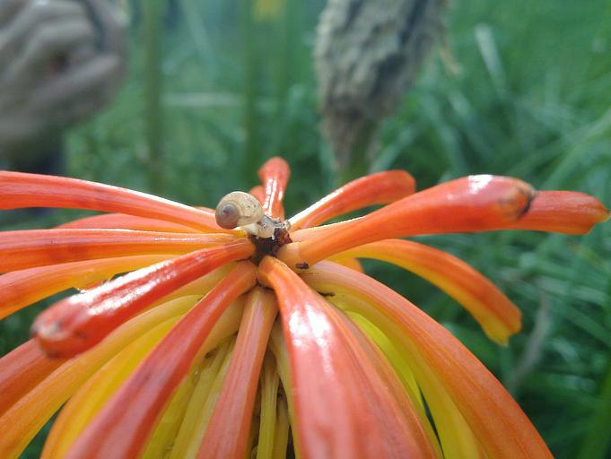Keywords: snail flower yellow orange fauna flora nature barcelona montjuic plant