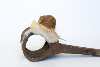 Keywords: snail shell iron rusty animal mollusk crawl slimy mucus probe close