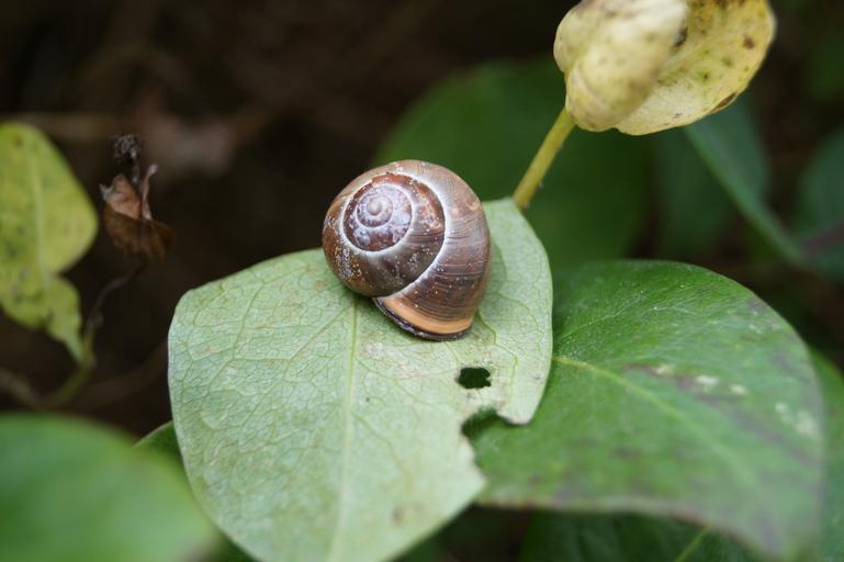 Keywords: snail shell mollusk nature leaf animal insect brown snail creature