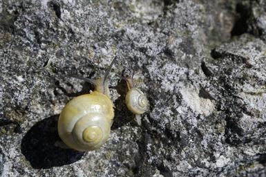 Keywords: snails crawl steinig yellow shell slowly mollusk nature close reptile animal probe gastropoda summer housing snail fauna mother child mother and child young small young animal two together peacefully side by side for two love