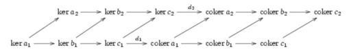 Keywords: Snake lemma nat2.png Snake lemma nat2 svg A commutative diagram with exact rows showing the naturality of the snake lemma Produced with TeX and XY-Pic using the source code below Both the image and the source code are in the public domain <pre> Produce a postscript file from this input with tex and dvips Loading the XY-Pic package \input xy \xyoption all Using postscript driver for smoother curves \xyoption ps \xyoption dvips No need for page numbers \nopagenumbers \def\coker \mathop \rm coker \xymatrix Our diagram is a 2x7 matrix \ker a_2\arr \ker b_2\arr \ker c_2\arr d_2 \coker a_2\arr \coker b_2\arr \coker c_2\\ \ker a_1\arr\arur \ker b_1\arr\arur \ker c_1\arr d_1 \arur \coker a_1\arr\arur \coker b_1\arr\arur \coker c_1\arur \end </pre> http //en wikipedia org/wiki/Image Snake_lemma_nat2 png 2004-01-29 Axel Boldt Both the image and the source code are in the public domain and Since I believe that intellectual property rights do not exist as we mere mortals cannot arrogate the right to own parts of Plato's eternal heaven of ideas every word I write is by default and always in the public domain http //en wikipedia org/wiki/User AxelBoldt complexes algebra Xy-pic diagrams |