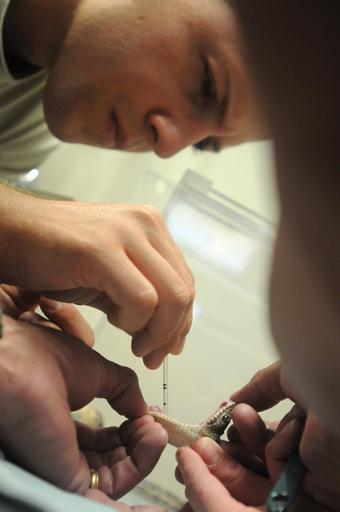 Keywords: Snake Surgery DVIDS279942.jpg en Army Sgt Ardicio Galvao animal care non-commissioned officer in-charge of the Guantanamo Bay Veterinary Treatment Facility inserts an anesthesia line in a Cuban Boa snake before inserting a tracking chip April 13 The clinic treats the pets of service members and Department of Defense employees who assigned to Joint Task Force Guantanamo and U S Naval Station Guantanamo Bay 2010-04-13 Petty Officer 3rd Class Joshua Nistas https //www dvidshub net/image/279942 100413-N-+++++-050 2010-05-17 16 25 GUANTANAMO BAY CU PD-USGov-Military-Navy Naval Station Guantanamo Bay Joint Task Force Guantanamo Images from DoD uploaded by Fæ |