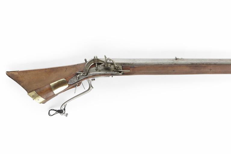 | Keywords: Snapplåsbössa, 1660-tal - Skoklosters slott - 90901.tif LSH artwork sv Snapplåsbössa Sverige ca 1660-1670 <br/>Åttkantig pipa av stål 8 räfflor På kammaren 2 ggr stämplad med BI Stöckel nr 2051 Sverige 1660-1670 c Pipan med fint snedraspad yta Ståndsikte av stål stolpkorn av mäsing <br/>Snapplås lägglås Svensk typ med långa bågformiga käkar - den övre inlaxad in den undre Utvändig slagfjäder i ett stycke med eldstålsfjädern Hane låsbleckets bakre del samt fjädern med kraftigt graverad dekor <br/>Hel stock av björk Svensk trekantig kolvtyp Beslag av mässing bakplå på kolvlådelocket låsskruvsbricka näsband beslag vid laddstocksrännans topp Sluten laddstocksränna En låsskruv Ursprungligen tre låsskruvar Varbygel med form av hävstång Avtryckare med snälltryck <br/>Tillbehör Krats av stål <br/>Märkt 7 med bläck ovanför kolvlådan original caption Snapplåsbössa 1660-tal <br/> Nyckelord 1660-tal Föremålsbild Snapplåsbössa ca other date - 1660 1670 brass - birch - steel size mm 1025 pipa size mm 116 size mm 1265 SKO place of origin original filename sm_dig7580 33912 inventory number SKO 12903 90901 CC-BY-SA Erik Lernestål Snaplock firearms 1660s Muskets Photographs of weapons by Erik Lernestål Media contributed by LSH dim-with multiple size templates Media contributed by LSH 2016-05 |