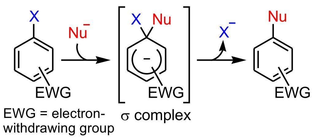 Keywords: SNAr mechanism.svg C - Mechanism of aromatic SNAr reaction aromatic nucleophilic substitution Source Own work Date 25 Dec 2007 Made with ChemDraw