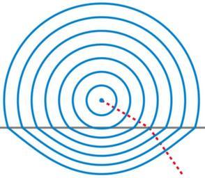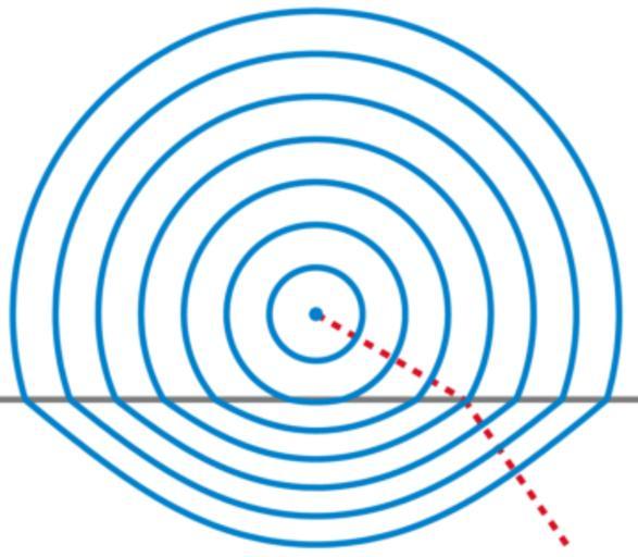 | Keywords: Snells law wavefronts.png Illustration of wavefronts in the context of Snell's law self-made with MATLAB 05 36 1 January 2008 UTC Oleg Alexandrov Snells law wavefronts svg Same image just in SVG Source code MATLAB <source lang matlab > Illustration of Snell's law function main n1 1 0; n2 1 5; figure 1 ; clf; hold on; axis equal; axis off; sign -1; is the source up or down O 0 -1 sign; k 500; KSmrq's colors red 0 867 0 06 0 14; blue 0 129 205/256; green 0 200 70/256; yellow 254 194 0/256; white 0 99 1 1 1; black 0 0 0; gray 0 5 white; color1 red; color2 blue; color3 gray; lw 4; plot_line 0; Theta linspace 0 2 pi k ; V 0 Theta; W 0 Theta; S0 4; spacing 0 45; p floor S0/spacing ; S linspace 0 S0 p+1 +0 1 spacing; plot the interface between diellectrics L 3 8; plot -L L 0 0 'color' color3 'linewidth' lw ; plot a ray plot_line 1; s 5 2; theta pi/3; wfr s theta n1 n2 O sign plot_line color1 lw ; plot the wafefronts plot_line 0; for i 1 p for j 1 k s S i ; theta Theta j ; V j W j wfr s theta n1 n2 O sign plot_line color1 lw ; end plot V W 'color' color2 'linewidth' lw ; end dummy point to enlarge the bounding box plot 0 S0+1 5 spacing ' ' 'color' white ; saveas gcf 'Snells_law_wavefronts eps' 'psc2' function a b wfr s theta n1 n2 O sign plot_line color1 lw ; X O+s sin theta sign cos theta ; if sign X 2 > 0 t -sign O 2 /cos theta ; X0 O+t sin theta sign cos theta ; if plot_line 1 plot O 1 X0 1 O 2 X0 2 'color' color1 'linewidth' lw 'linestyle' '--' ; end d norm O-X0 ; r s-d n2/n1 sign ; theta2 asin n1 sin theta /n2 ; XE X0+r sin theta2 sign cos theta2 ; else XE X; end a XE 1 ; b XE 2 ; if plot_line 1 plot X0 1 XE 1 X0 2 XE 2 'color' color1 'linewidth' lw 'linestyle' '--' ; end </source> Refraction diagrams Images with Matlab source code Wavefront |