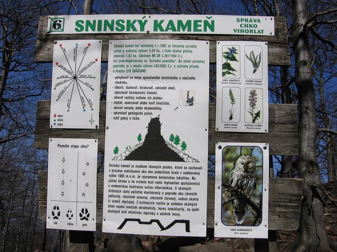 Keywords: Sninsky kamen 02.jpg en Slovakia Vihorlat mountain Sninsky kamen peak - info table by the path to the top pl Szczyt Sninsky kamen w górach Wyhorlat - tablica informacyjna own PM 26 IV 2008 Sninsky kamen