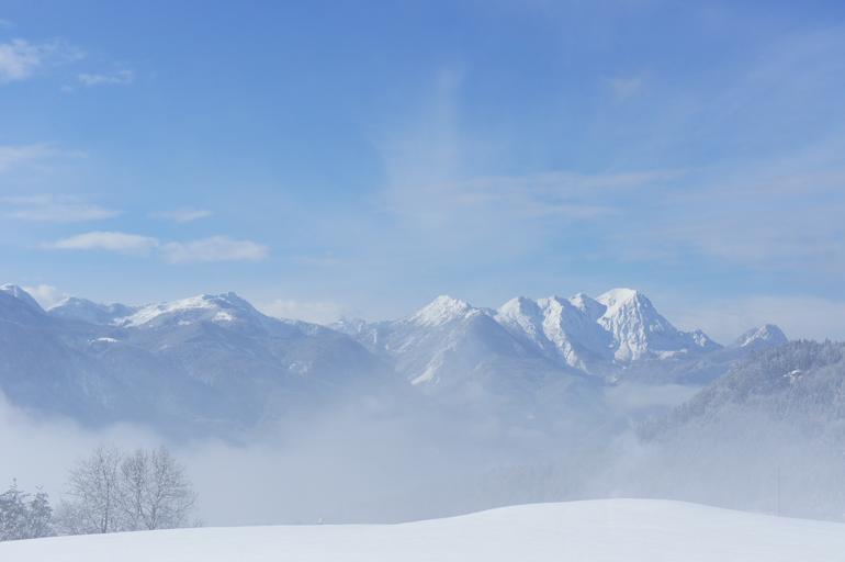 Keywords: snow mountains sky high mountains winter wintry cold fog alp clouds landscape alpine rock view distant view