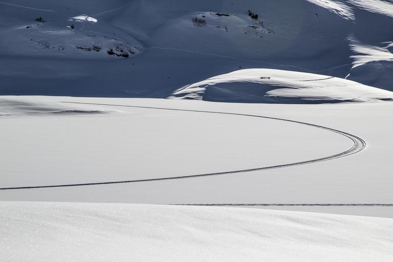 Keywords: snow tracks snow winter white light shadow nature trace mountains