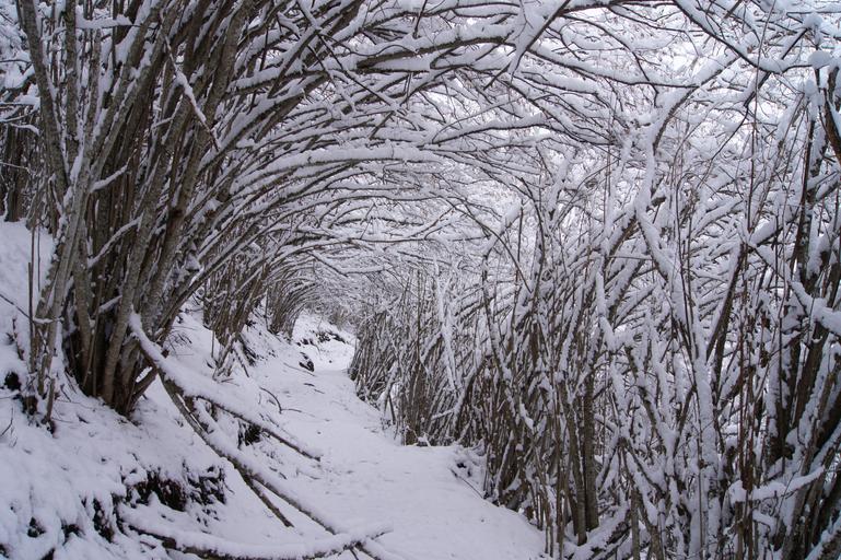 Keywords: snow winter tunnel trees path nature cold white