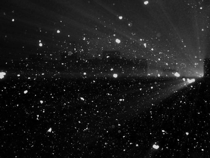 Keywords: snowfall snowflakes winter snowing snow night buildings silhouette lights monochrome black and white
