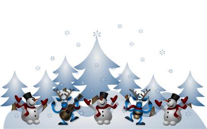 Keywords: snowmen reindeer christmas noel x-mas xmas card dance dancing deer happy scarf smile snow snowman winter fir landscape postcard