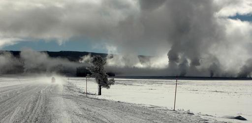 Keywords: yellowstone yellowstone national park yellowstonenationalpark national park nationalpark winter outdoor Snowmobilers driving south on Fountain Flats; Diane Renkin; January 2015; Catalog #19821d; Original #IMG_7372 Snowmobilers driving south on Fountain Flats; Diane Renkin; January 2015; Catalog #19821d; Original #IMG_7372