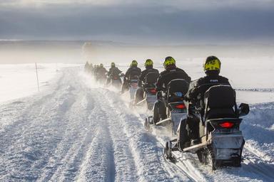 Keywords: snowmobiles snow path road recreation tour travel winter cold active adventure outdoors white helmet lifestyle transportation snowmobiling