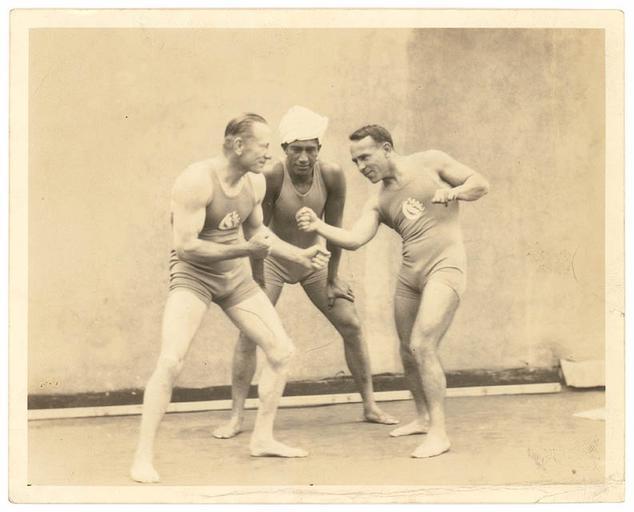 | Keywords: gold medallists goldmedallists bronze medallist bronzemedallist silver medallist silvermedallist swimmers reginald leslie (snowy) baker reginaldlesliesnowybaker sportsmen boxing world records worldrecords duke kahanamoku dukekahanamoku state library of new south wales statelibraryofnewsouthwales wallaby frank beaurepaire frankbeaurepaire olympians hawaiian australian foaf:depicts=http://nla.gov.au/nla.party-492800 foaf:depicts=httpnlagovaunlaparty492800 xmlns:foaf=http://xmlns.com/foaf/0.1/ xmlns:foaf=httpxmlnscomfoaf01 foaf:depicts=http://nla.gov.au/nla.party-461797 foaf:depicts=httpnlagovaunlaparty461797 relevos cabrones duke paoa kahinu mokoe hulikohola kahanamoku duke paoa kahinu mokoe hulikohola kahanamoku dukepaoakahinumokoehulikoholakahanamoku put up your dukes putupyourdukes Sir Francis ("Frank") Joseph Edmund Beaurepaire (13 May 1891 – 29 May 1956) was an Australian distance freestyle swimmer from the 1900s to the 1920s, who won three silver and three bronze medals, from the 1908 Summer Olympics in London to the 1924 Summer Olympics in Paris, setting 15 world records. Duke Paoa Kahinu Mokoe Hulikohola Kahanamoku (August 24, 1890 – January 22, 1968), Hawaiian, is generally regarded as the person who popularized the modern sport of surfing. He was a triple Olympic swimming champion and twice a silver medallist in three Olympic Games. Reginald ("Snowy") Leslie Baker (8 February 1884 – 2 December 1953) was an Australian athlete, sports promoter and film actor. At 16 he played in the Australian Rugby Union team against Great Britain. At 17 he was middleweight boxing champion of New South Wales, and at 18 took the middleweight and heavyweight boxing titles of Australia. Baker was also prominent at polo, water polo, cricket and diving, and proficient in surfing, fencing, hockey, rowing, yachting and equestrian events. He appeared at the 1908 London Olympics, representing Australasia in the 4x200m freestyle relay, finishing fourth, and in the diving where he lost in the first round, coming seventh against the powerful Germans who dominated the sport at the time. He also took part in the Olympic boxing competition, where he lost the final match against Johnny Douglas, winning a silver medal. Douglas' father, J H Douglas, as President of the Amateur Boxing Association, presented his son with the gold medal and Baker with the silver. The official report did not name referees, but a number of newspaper and magazine reports later claimed that Douglas senior had refereed the final and Baker confirmed this in an interview in 1952 with respected journalist Norman Bartlett. The pair met in a bare-knuckle return match at a London club and Baker knocked Douglas out. Reference: Wikipedia Format: Photograph Notes: Find more detailed information about this photograph: libapp.sl.nsw.gov.au/cgi-bin/spydus/FULL/PM/BSEARCH/19/52... Search for more great images in the State Library's collections: acms.sl.nsw.gov.au/search/SimpleSearch.aspx From the collection of the State Library of New South Wales www.sl.nsw.gov.au Sir Francis ("Frank") Joseph Edmund Beaurepaire (13 May 1891 – 29 May 1956) was an Australian distance freestyle swimmer from the 1900s to the 1920s, who won three silver and three bronze medals, from the 1908 Summer Olympics in London to the 1924 Summer Olympics in Paris, setting 15 world records. Duke Paoa Kahinu Mokoe Hulikohola Kahanamoku (August 24, 1890 – January 22, 1968), Hawaiian, is generally regarded as the person who popularized the modern sport of surfing. He was a triple Olympic swimming champion and twice a silver medallist in three Olympic Games. Reginald ("Snowy") Leslie Baker (8 February 1884 – 2 December 1953) was an Australian athlete, sports promoter and film actor. At 16 he played in the Australian Rugby Union team against Great Britain. At 17 he was middleweight boxing champion of New South Wales, and at 18 took the middleweight and heavyweight boxing titles of Australia. Baker was also prominent at polo, water polo, cricket and diving, and proficient in surfing, fencing, hockey, rowing, yachting and equestrian events. He appeared at the 1908 London Olympics, representing Australasia in the 4x200m freestyle relay, finishing fourth, and in the diving where he lost in the first round, coming seventh against the powerful Germans who dominated the sport at the time. He also took part in the Olympic boxing competition, where he lost the final match against Johnny Douglas, winning a silver medal. Douglas' father, J H Douglas, as President of the Amateur Boxing Association, presented his son with the gold medal and Baker with the silver. The official report did not name referees, but a number of newspaper and magazine reports later claimed that Douglas senior had refereed the final and Baker confirmed this in an interview in 1952 with respected journalist Norman Bartlett. The pair met in a bare-knuckle return match at a London club and Baker knocked Douglas out. Reference: Wikipedia Format: Photograph Notes: Find more detailed information about this photograph: libapp.sl.nsw.gov.au/cgi-bin/spydus/FULL/PM/BSEARCH/19/52... Search for more great images in the State Library's collections: acms.sl.nsw.gov.au/search/SimpleSearch.aspx From the collection of the State Library of New South Wales www.sl.nsw.gov.au |