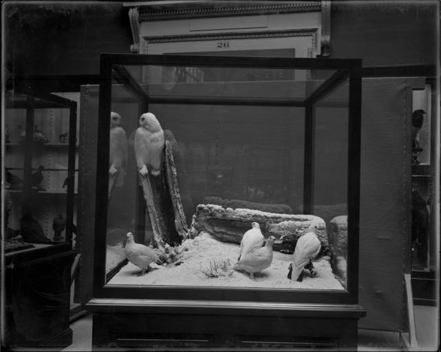 Keywords: field columbian museum chicago blackandwhite monochrome black and white Snowy Owl (Nyctea nycta) and Willow ptarmigan (Lagopus lagopus) [birds] with an Arctic Fox (Alopex lagopus) in background. Protective Coloration of Birds and Mammals in High Latitudes, Hall 26 Ornithology, Case I. Located off West Court. Field Columbian Museum. 1899. Original size and material: 8x10 inch glass negative Digital Identifier: CSZ6241 Part of the Illinois Urban Landscapes Project: www.fieldmuseum.org/urbanlandscapes/ Snowy Owl (Nyctea nycta) and Willow ptarmigan (Lagopus lagopus) [birds] with an Arctic Fox (Alopex lagopus) in background. Protective Coloration of Birds and Mammals in High Latitudes, Hall 26 Ornithology, Case I. Located off West Court. Field Columbian Museum. 1899. Original size and material: 8x10 inch glass negative Digital Identifier: CSZ6241 Part of the Illinois Urban Landscapes Project: www.fieldmuseum.org/urbanlandscapes/ |