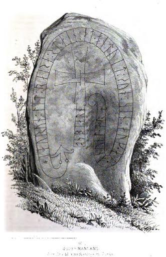| Keywords: Sö 266, Sanda.jpg The runestone Sö 266 The inscription reads + iaurun lit raisa stain at ontuit sun sin auk at onunt ar + osbiarn In English Jórunnr had the stone raised in memory of Andvéttr his son and in memory of Ônundr's Ásbjôrn Dybeck Richard 1855 Svenska run-urkunder Första Samlingen Stockholm Joh Beckmann 1855 Richard Dybeck Author died more than 70 years ago - public domain PD-old DEFAULTSORT Sö266 Runestones Södermanland Runestones of Haninge Municipality Österhaninge socken | ||||