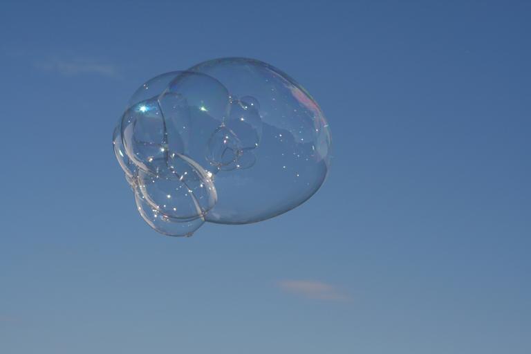 Keywords: soap bubble sky blue cloud blow fly weightless shimmer float airy ease flight background floating