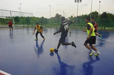 Keywords: Soccer match 140521-N-KL617-039.jpg en Logistics Specialist 3rd Class Konadu Amopoku from U S 7th Fleet flagship USS Blue Ridge LCC 19 fires a shot on goal against members of the Royal Malaysian Navy during a friendly soccer match Blue Ridge port visits represent an opportunity to promote peace and stability in the South Indo-Asia-Pacific region demonstrate commitment to regional partners and foster growing relationships U S Navy photo by Mass Communication Specialist 3rd Class Kelby Sanders 2014-05-20 Petty Officer 3rd Class Kelby Sanders https //www dvidshub net/image/1355663 140521-N-KL617-039 2014-05-20 20 47 KUALA LUMPUR MY PD-USGov-Military-Navy USS Blue Ridge LCC-19 Images from DoD uploaded by Fæ