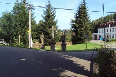 | Keywords: Sochy Mařenice.jpg cs Sousoší ve středu obce Mařenice vpravo vzadu budova obecního úřadu own Zákupák 2011-08-03 50 48 30 620 N 14 40 37 911 E region CZ Mařenice Sculptures of Crucifixion of Christ Crucifixes in the Czech Republic Crosses in Liberec Region |