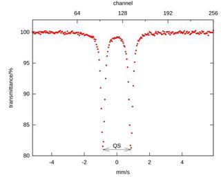 Keywords: Sodium nitroprusside Mössbauer spectrum.svg sodium nitroprusside a common reference with IS 0 0 mm/s and QS 1 712 mm/s pl Widmo mössbauerowskie Fe-57 nitroprusydku sodu powszechnie używanego wzorca o IS 0 0 mm/s i QS 1 712 mm/s own Divide 2010-06-17 Generation Generated from a datafile with gnuplot script set term svg set xrange -5 17112330e+00 5 91358115e+00 unset key set ylabel 'transmittance/ ' set xlabel 'mm/s' set x2label 'channel' set x2range 1 256 set xtics nomirror set x2tics 64 64 set mx2tics 2 set yrange 102 set arrow 3 from - 856 81 to 856 81 heads lw 6 set arrow 2 from 856 80 5 to 856 81 5 nohead lw 2 set arrow 1 from - 856 80 5 to - 856 81 5 nohead lw 2 set label 1 'QS' at 0 81 6 center set output 'snp svg' plot 'snp res' pt 7 ps 4 Datafile lzmad then base64d XQAAgAD//////////wAQC0MPX+XXr/wYA5GVzDv7WEIYP4cxhSGEkjn88zvmudOvZTZlxH/Pd3IU KcLks1Z7SkdfpoyFzrheYEjT7Y+8ylyXKbiPW2WggM2THl+HBiqAiXxXGMLEpf7KIxdud/dA1hjX fHsBwTChDh+6gDftyIo1Y0x3o3k2Dk0kNziWMmymarKjBj6xWf7HT68s2ttdxhqD0eDBRSfb5phM GXMMsBk2Y6wMrckbnHLpOWqfZv+RRhiv8nELvDona/NAXeWCdorBHbSfecYS71gPIcwuMHiFnzW8 8FVgjbHiVMLrZmeX/4TjRNoD0JCP3fQehAK0ZgL6rYGpy+nijolLEo8idxLjYguQgnCL3Cfsm0Sq In7o8iLY2DmqdHCUE7iBAK9XU+kPXySuLDHMU+1c3XF1TTNTqONTcpCVNeEEfRn7oVMk7O3fsMvc G/qnEaRJj1SCBTrzBfmMswax77+i03Z/ss1LdkuLVHhNl91Vp4evqKybrbYcj489mxS4HEy4rvcs 8J3hlT1QylmspkOvZVwsdRoyqfMWmhE+2nj6DOR5x5cPbs+rkocUbBR8LhqNtrkiaYpA0Y3tccCH 2ZauaHBMFtFSuP8O7NkHiqEz21rcN7N/YFUVhCTUzZmlZqp7WLfJxDHzmzmu8qgSjUqG2Dlq8HVr ++CUV39oQDYJ+13bSyrlPevJcEW/ibEapfISGuKuS3UFL1W+rDmVCAPiQwZZqPThhGitw54G33by Fecrw4KmrdPQLkEO39JMJ0FOfLd5OmFWTUje6aJqjJ6ySILyJFLV6GuPYRWrIEYn/eQ+oW8qksre LnLBF1qip9NedowS8jQcnY69ejGpW51J4k9dWnE9MyZ+6E0WIEz0k5lFQRViEKOwCBnJABMX5BQW jtyZ6VuMn9d3Yqz6h3MEGxFZHb9bEdWmoQt1aJhm4fVyEJ4BgaHFMLlTU9qEv9TCEaxQVBa7zmN4 WQaS1CiFzqiRyvOCeDlMV7UUw/rf9R+LSu70psDtdEoeltSMiaxpvThktK3VkDE/OgeMAR6Gr0GI gLoc5MnU/5LbhOTp0/2L8W/RYWRaOhNM6/NswjeUj4ZPIJdlbcRvoUppCRQbWLM4pLCV4COzAzvB 1B1vSpMVTu+E0l+AKycNksphWDYKQ0m2py6EiI7n4e+szRZvBpFRMrsYNCoYfSuat5ocASoNecjN jt9TsnSzZOi7YueQqvrhaCd1GfNzyIz5+BisLu1wmlYQHUhKvvguvJZHLCsX1V5jo6hGNvMJrvx7 rKXBAobBvt4jCXKJMvwNBw0wghV/Wue2Py0KznhecJnE20KwYxa++UP2wUNrVdeuH081iDaMJPIX v213GcSUeCkS/q50SRmFEzVH6TixUmrRmGlRzo76vVqu88jrtJVstDLetVhwrPERbKDTX8KNx+a7 dTx4YkjYGgoOKHiUuln39q6YkadiEnueJEkkmKb/+OSZL2ARBplbItiXl0RjG5xLPS5YBifTfH5P 2K4Fl6QrED2EtcoLuhUUuSB09kyCrIncTBOKufGJZydFWuzbA9FC2rg+06pPz1h1O6YEblxnttQW 12qn0f707Atrg0rl1VNeZx6eEGdTtCF/gws6MEqYPYEHcHj8cmI+tnRGQKPVJzUx1lTaThanPm1B C6liV+U8q7llQerpsqvnwUaTJqE7p1pPMa5CmkcrwzLgIaFIQM66ACnKpc7yDmXDwZQhBmeEimA1 WhPTZvxZbGQYIjXfUrITAXh7uC6H/Zd7+R1RBqM8i0/WQjwpEyk+1ZlHq0ByDqzltD8ha2jSXrqV rvsewTa/Fl8A6jIqbdGrVIvZHgdFkbE9dH6Lxlht9GtSD3KkKKdgIkJTBmb8SIpzm2TZ8MouJUtg g78ImatHbdYJ12O6aQCaJ/we7ziV6NWU4ctceQNg3xYYeJiTCq7SRZEUDuHXJ/hpkkBGJCItnxIU zVFhDx7SwU0PAuGShR8nPnbO2DSz1NQOcCdMYg+FAsXrAhMJ6GrcQN5Xk3pTVGwPYuM2l+3X59zL 3tyxDjRmFo8JODLaj3EgRzU/ICcDzwAjxnvoRFQfUlP/V5B9ZcKQZ794hAbM8i7ElnzCjZR+v068 DQDVbzoECyntW8bdxErFiIsGgi6ihXSMFzBcMCeJeej30oYdOxHc6Fdy1zHMOW5kvTanQUEGiHus xiXk5HEXLscJE/W2RcHDmBljphUW6G0iPsCGu1MpfZARjewcPfstoQq/OidpQWu1J/lUdkfMwtxZ gwwvkmg7JVzH9c8H1GyeZiZGI+ehLkH2kruN4vWhQb5xVGXlBc0Qvrep+g9YNyY+KcGgW2fIih3U NWgNElGw5KiNyAHHDnJJgOYTQgFW3nd+7JnAQ9HVC2KOmbND9y8QZ6baUlsnq4n8oANvWjByRRTJ jag2Ceejm+bBrVu+ambyzwcxa5xmTODbZnv//2xIeqKmi3U5vA3V13b0DbY93UKEWiksBk6At/Pf fgOlnM5AnNJpKbT1Z0SuaUkU7mx5eZE15ZRyYyzO+YVYp5X+iaPT7nF2sVz0g+RcJYs7PDaZOfNZ wYLYgolGCITHEiH8SSUVWUxOeiOckAI0OhH7o2JsBXa4vWwNtiR7+WgzCvzVGVcKotlDBdkwZu4M 0f/8m+pJ2GLqK3hliM+kfPGGUzsM63COQuItfXiHkwzb4rPrYRLk02OpouGvo/IW9teLgg7l8EK3 YkU57L48+KD/K5G7AdcR6sduXG3tr4Zq/VrSnZ8SFvKue9fHZm4yCw6BN18KFzeYc5oWw7OxJyup dBIbJwOw6XtSgO+UaT5yOOJqi7fNBesqFSfa2J/ooGuPCmsRA7X6IhdBvvR3gP/a4Zc1cyD49kFa 8fj4XQWzugPswA6tH4GzfA+u37A3VRjVjCR8ArvvRyqSfsI6d2OGxJSyuIcWV/Tum3Pi+o/ZOjXX VHBhIyFu4TUAdosX6GcfTVR0hu3dtreD5SbCgrakxt0YAJ+dziSCfyv+849HWYimsP/cghPm Spectrum Mössbauer effect Images with Gnuplot source code |