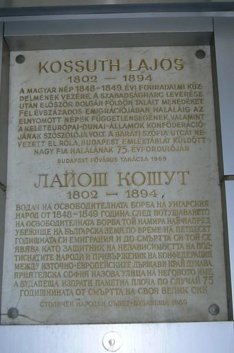 | Keywords: Sofia-Lajos-Kossuth-plaque.jpg Паметна плоча в чест на Лайош Кошут на едноименната улица в София Бълга ия Memorial plaque in honour of Lajos Kossuth placed on Lajos Kossuth Str in Sofia Bulgaria own 2008-06-17 Vassia Atanassova - Spiritia Bilingual plaques in Bulgaria Plaques to Lajos Kossuth Plaques in Sofia |