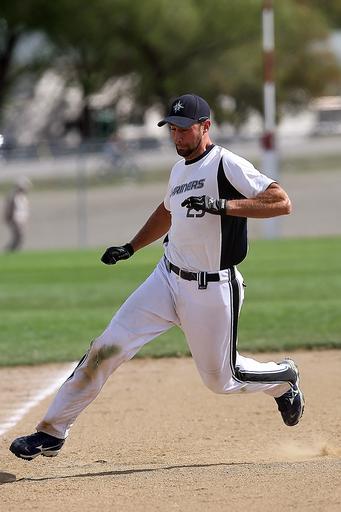 Keywords: softball men runner game player field man recreation run sport uniform base summer competition running rounding third athlete athletic infield cap baseball player