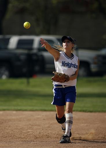 Keywords: softball player throwing ball game competition female teen play sport uniform field athlete teenager concentration ballgame hand glove aim infield