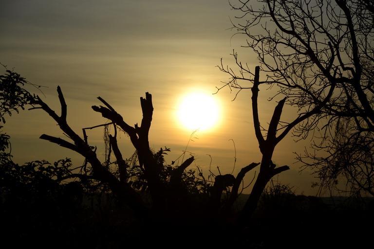 Keywords: sol twigs sunset against light clouds in the sun tree dry twigs