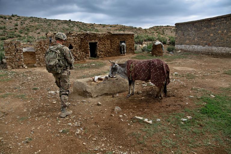 Keywords: soldier calf farmland farm cow us army afghanistan defilade